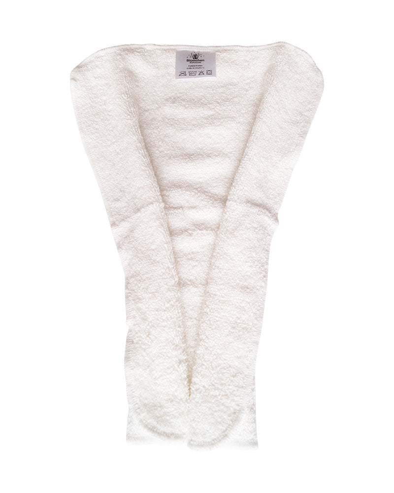 With this terry cloth prefold you can change the diaper under the protective diaper cover in a way that is perfectly adapted to your child and their needs. Whether you fold it straight as a bridge or to protect the child around the diaper cover from breast milk stool, you are guaranteed a large volume and fast absorbency.