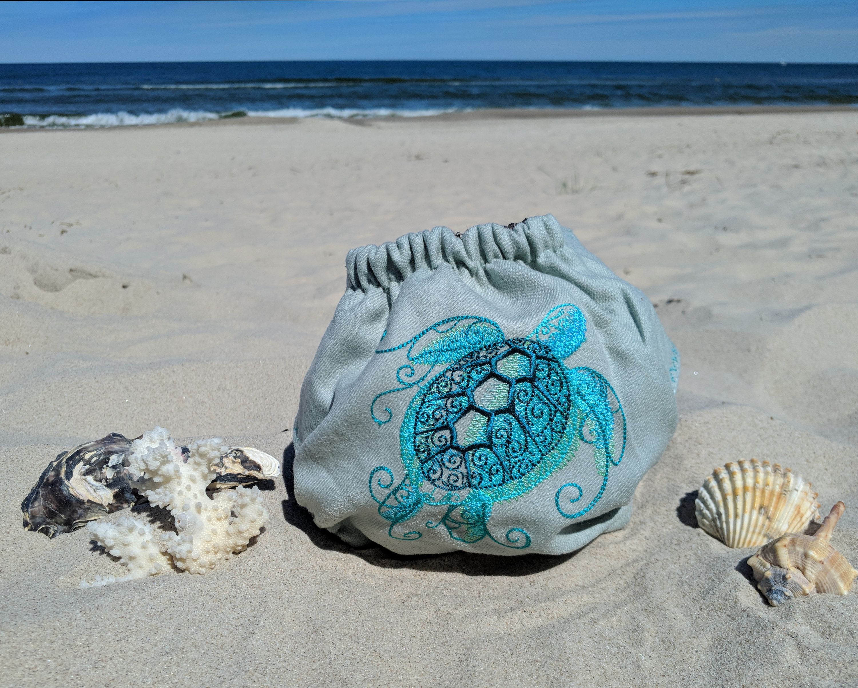 This diaper cover is particularly impressive due to the artistic patterns that have been embroidered into the diaper.
