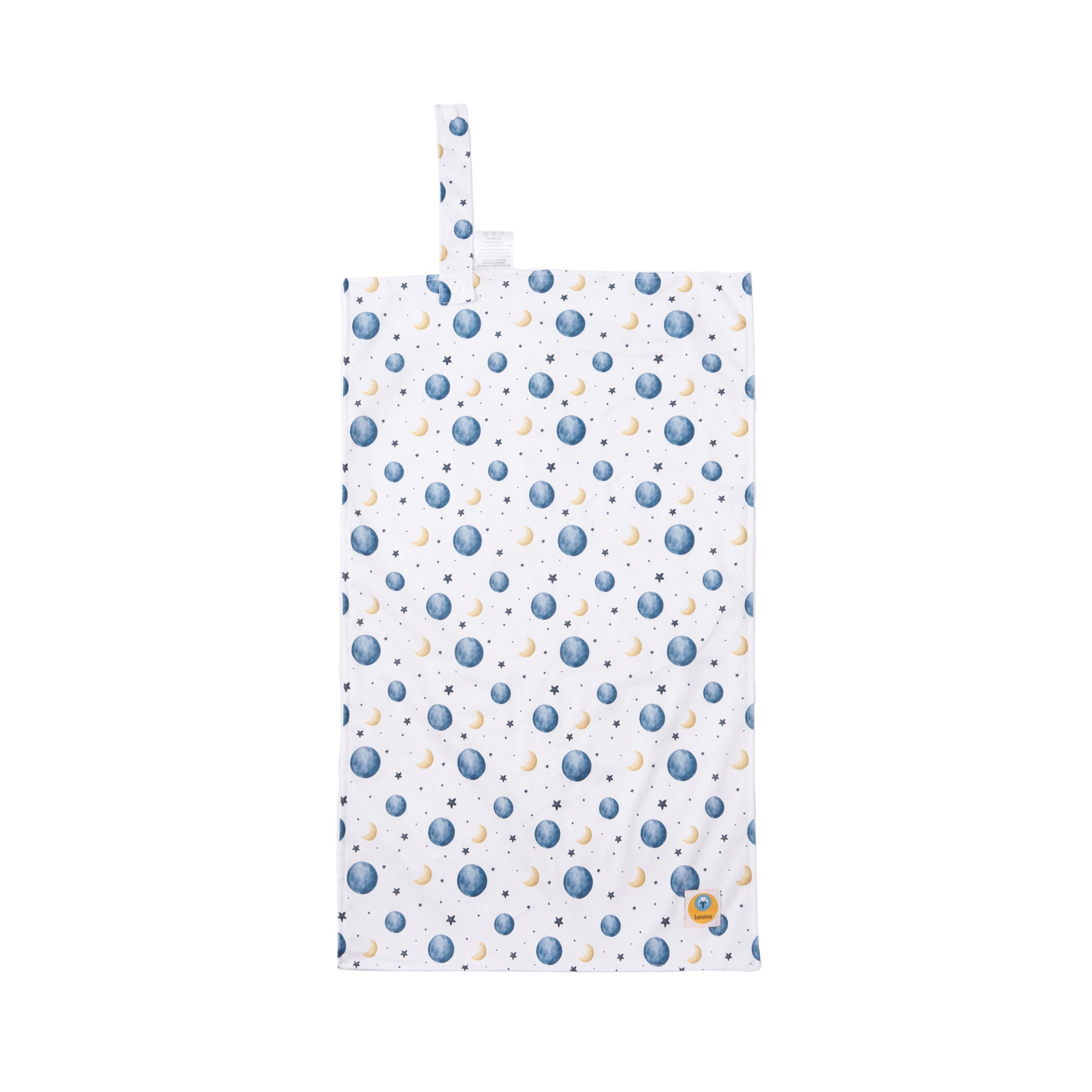 One side is made of bamboo velour, which remains soft even after repeated washing. The white side is for the child, so that it is always lying on the comfortable side and if something goes wrong, the velour can quickly absorb it. The underside is made of waterproof PUL, so that the surface is always protected.