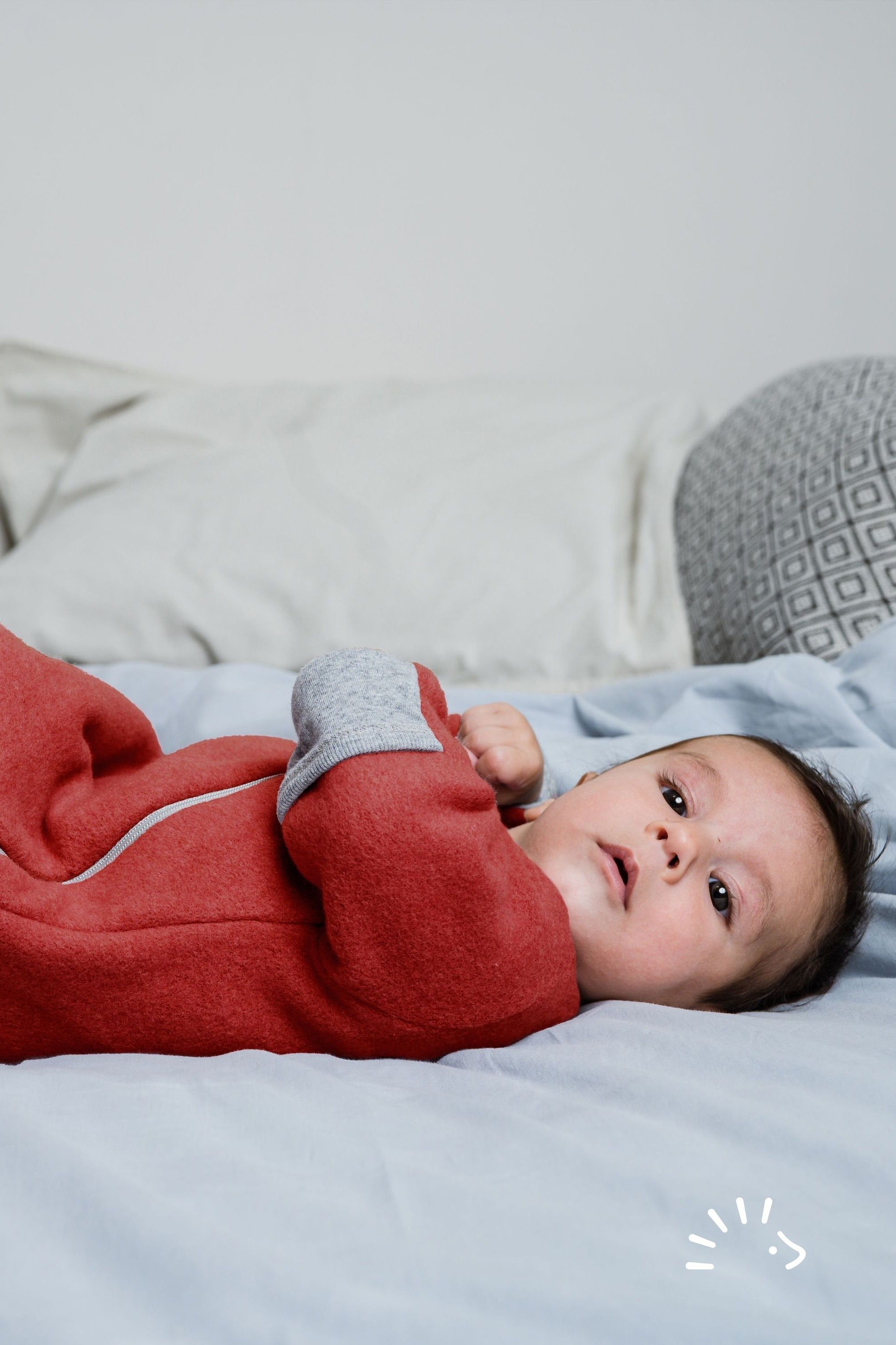 The long-sleeved Newborn sleeping bag made of certified cotton velour is a cuddly, double-layered sleeping bag for your newborn.