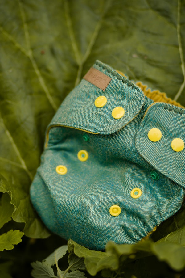 The Puppi overpants are made in Poland - the merino wool also comes 100% from Poland and is proven to be mulesing-free. The colorful snaps and the beautiful decorative seams are part of the typical Puppi design. The diaper is made of two-layer merino wool flannel - dries super quickly and is very soft.