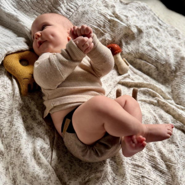 The Puppi overpants are made in Poland - the merino wool also comes 100% from Poland and is proven to be mulesing-free. The colorful snaps and the beautiful decorative seams are part of the typical Puppi design. The diaper is made of two-layer merino wool flannel - dries super quickly and is very soft.
