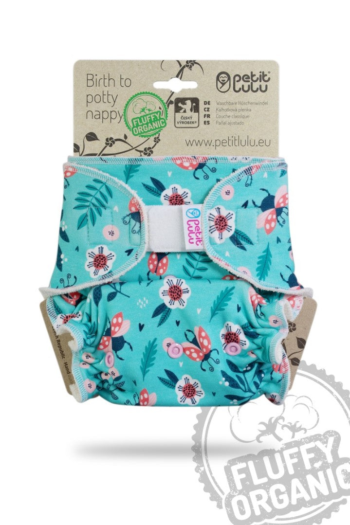 Petit Lulu hat ihre ohnehin schon wunderbaren Höschenwindeln weiter entwickelt und rausgekommen ist die Fluffy Organic. "Fluffy" steht für besonders weiche Materialien die auch nach mehreren Wäschen noch besonders angenehm zu tragen sind. Der "Organic" Teil steht für Stoffe in Bioqualität, was die Windel besonders ideal für Babys mit Ekzemen und Allergien macht.